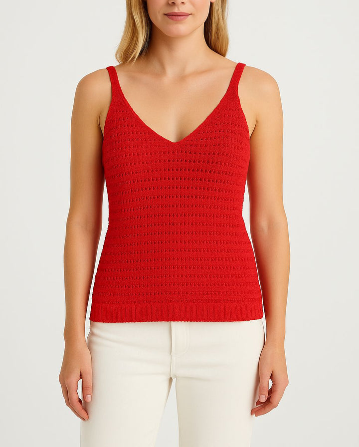 Descubre la elegancia de esta blusa de tira que realza tu figura con un corte semi ajustado perfecto. Confeccionada en una tela bordada exquisita, cuenta con un escote en V que añade sofisticación a cualquier look. Una prenda versátil que combina comodidad y estilo para destacar en cualquier ocasión.