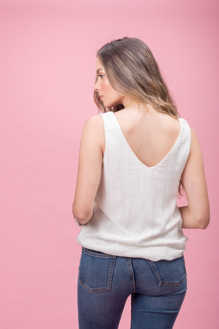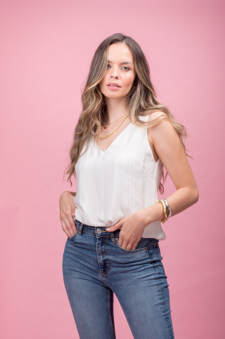 Minimalista, fresca y con un corte que estiliza. La Blusa es una prenda clave para quienes aman la elegancia sin esfuerzo. Su escote en “V” realza el cuello y aporta un toque femenino, su caída ligera brinda comodidad y movimiento.