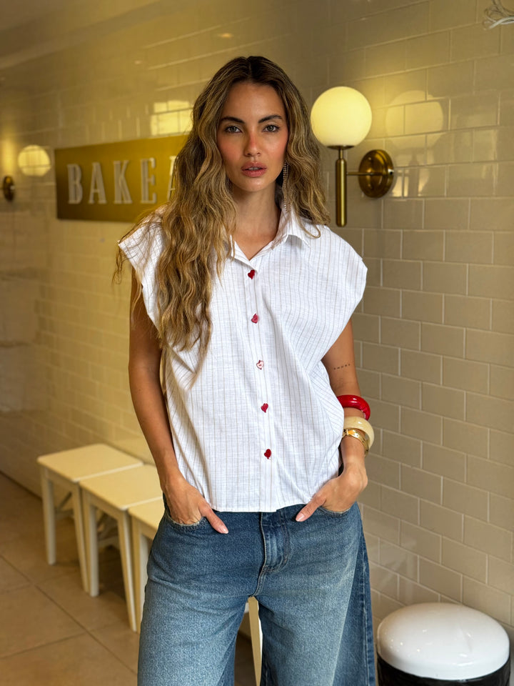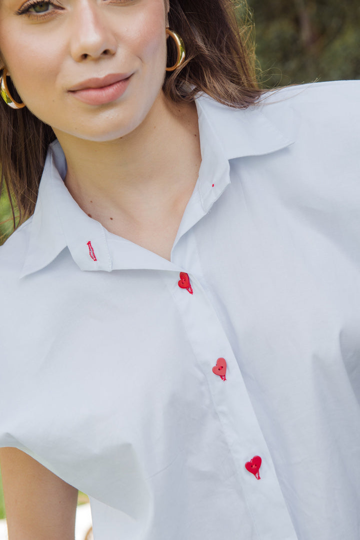 Nuestra camisera Rita es un clásico renovado con un toque romántico.