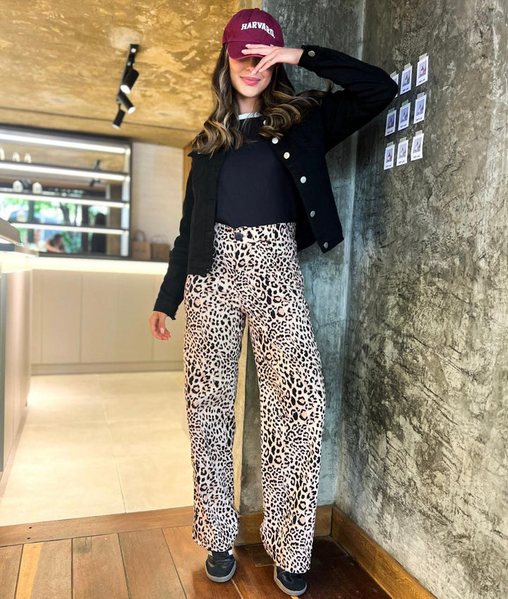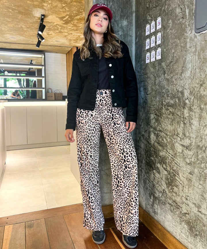 Su estampado animal print en tonos cálidos lo convierte en protagonista absoluto.